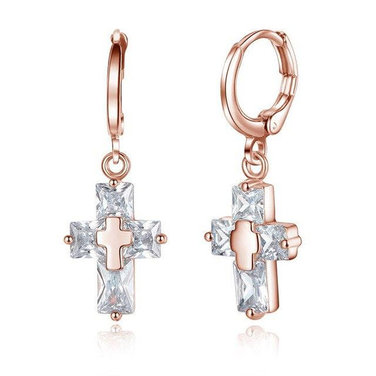 Catholic Vision Rose Gold Cross Hoop Earrings