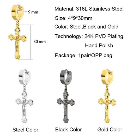 3 Colors Crucifix Hoop Earrings 319L Stainless Steel