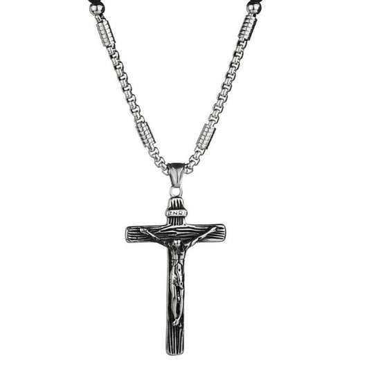 Silver Jesus Christ Crucifix Pendant with Bead Necklace