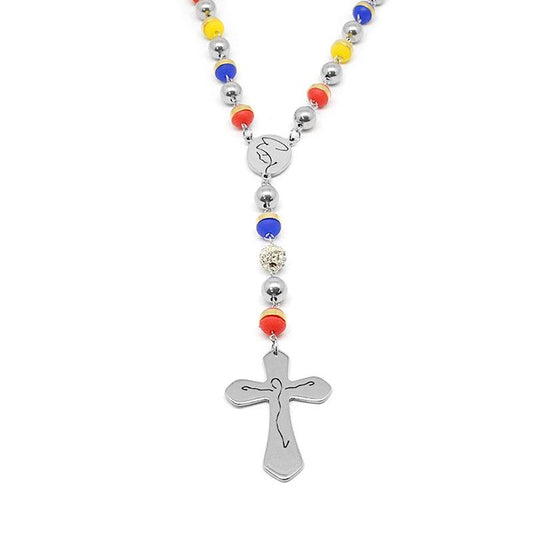 Stainless Steel and Multicolor Rosary Bead Necklace