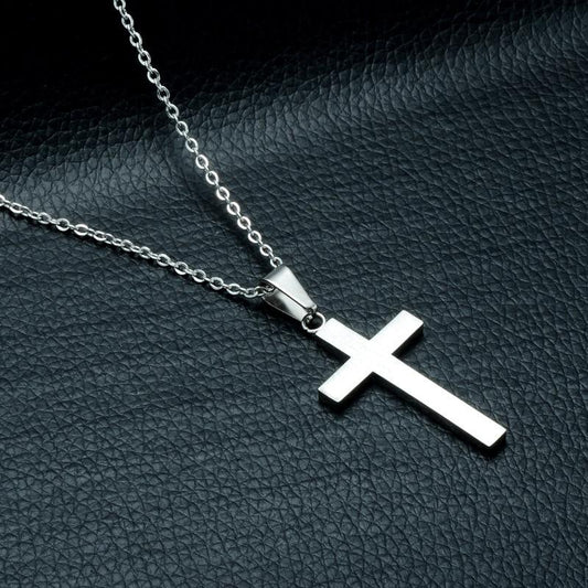 Silver Cross Pendant Necklace with Black Carbon Fiber Inlay
