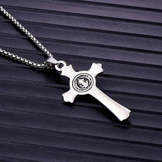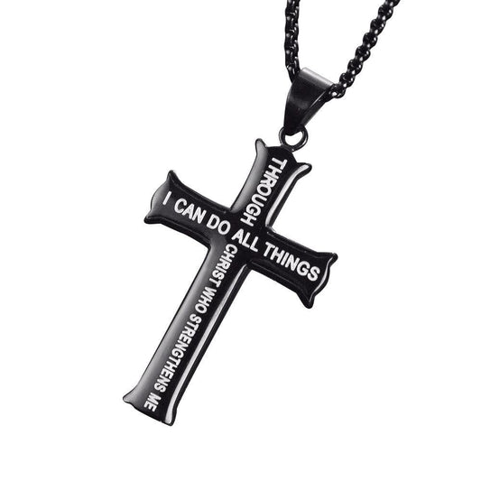 Silver & Black Stainless Steel Christian Pendant Necklace for Men