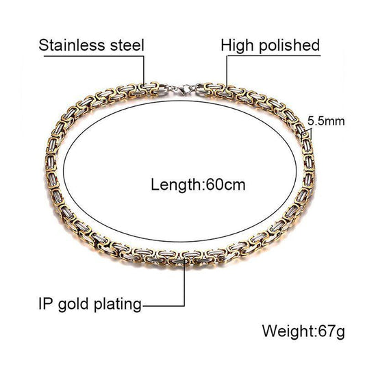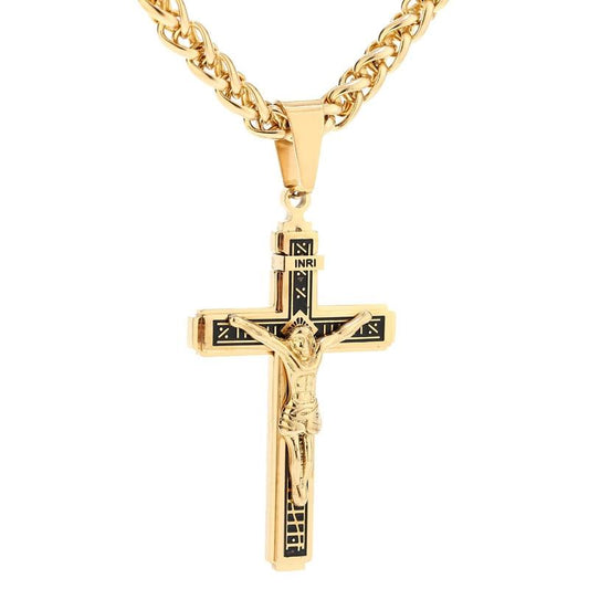 Stainless Steel Two-Tone Crucifixion Necklace Byzantine Chain