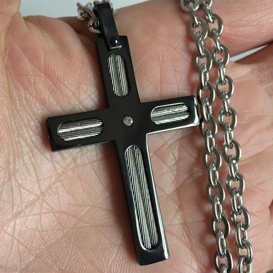 Black Plated Stainless Steel Titanium Wire Cross Pendant Necklace