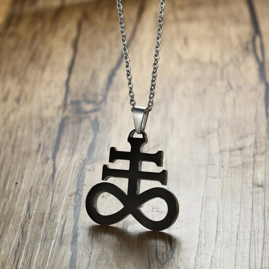 Black Stainless Steel Leviathan Cross Pendant with Chain Necklace