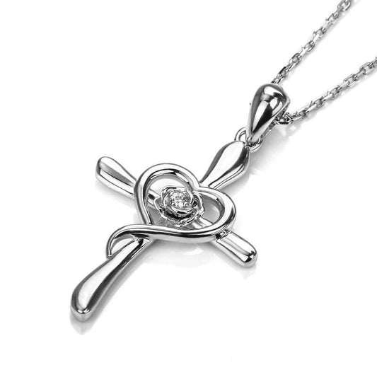 Sterling Silver Cross Pendant with Crystal Heart Necklace