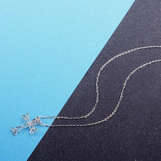 Sterling Silver Knott Hearts Cross Pendant with Chain Necklace