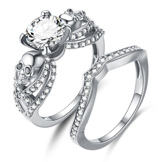 Skull and Cubic Zirconia Punk Style Engagement Ring