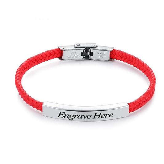 Laser Engrave Braided Soft Leather and Stainless Steel Custom Bracelets