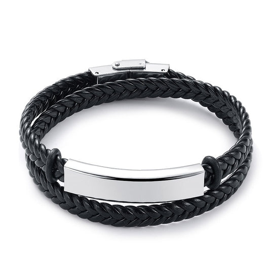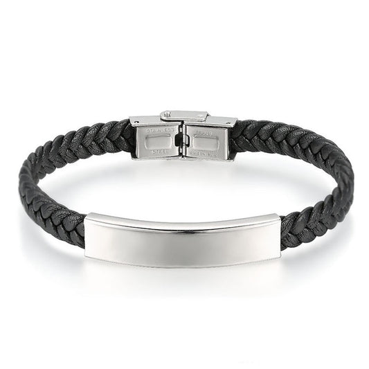 Engravable Leather and Stainless Steel Fashion Bracelet