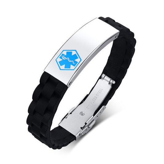 Custom Engrave Medical Alert ID Silicone and Stainless Steel Personalized Bracelet