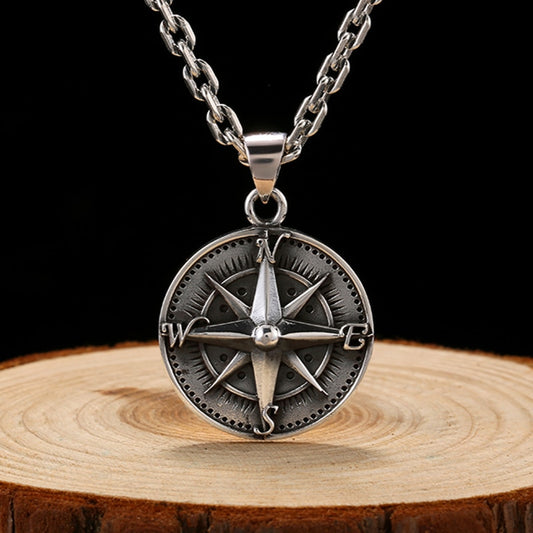 High Polished Round Compass 925 Sterling Silver Vintage Punk Rock Pendant