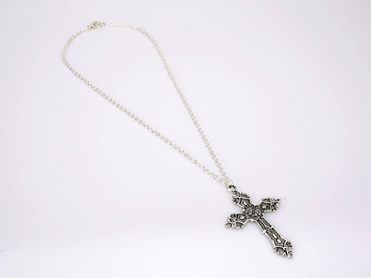 Elegant Silver Gothic Cross Pendant with Link Chain Necklace