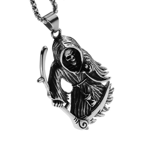 Dark Silver Grim Reaper Pendant Chain Necklace