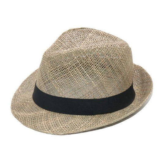 Wide Brim Cotton Fedora Panama Hat with Metal Sequins Hatband