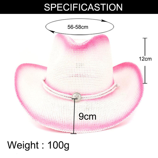 Pink Paper Straw Cowboy Hat with Windproof Rope