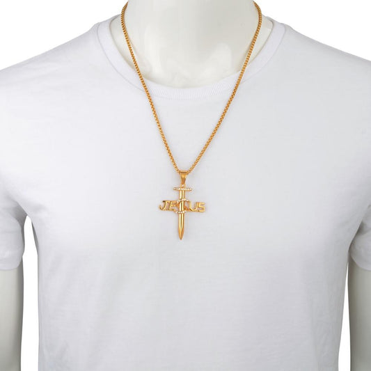 Hip Hop Jesus Cross Nail Pendant Necklace