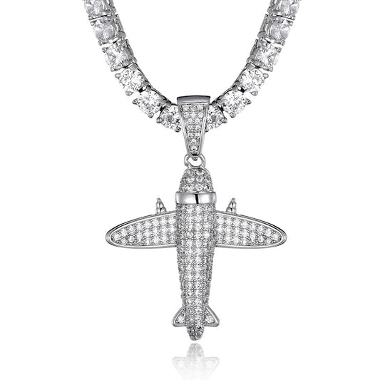 Cubic-Zirconia-Studded Aircraft Bling Hip-hop Pendant Necklace