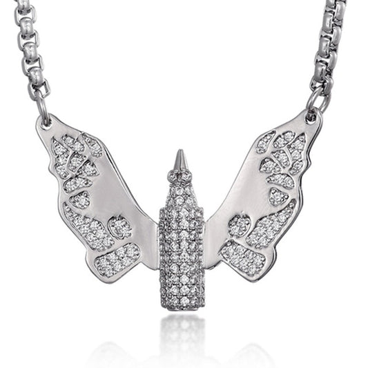 Cubic Zirconia Studded Butterfly Bullet Bling Hip-hop Pendant Necklace