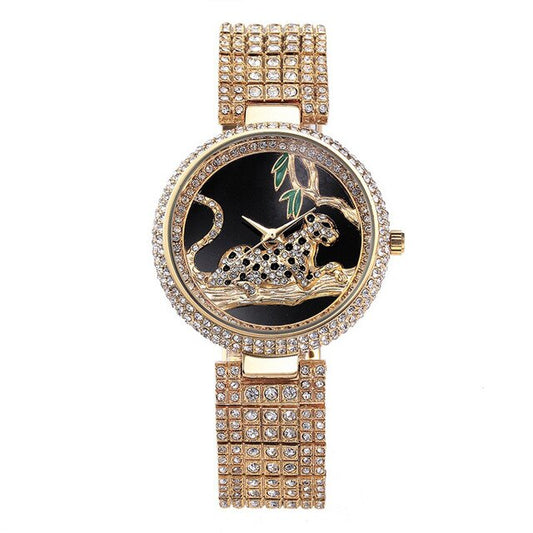 Waterproof Leopard Shining Cubic-Zirconia-Studded Stainless Steel Band Fashion Hip-hop Quartz WatchRegular price $56.98 USDRegular priceUnit price per$66.98 USDSale price $56.98 USDSale