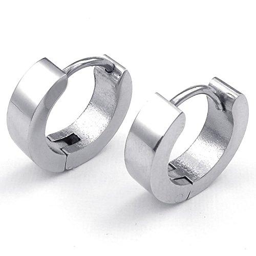 Men Stainless Steel Classic Plain Huggie Hinged Hoop Earrings