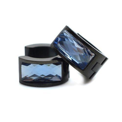 Men's Stainless Steel Stud Hoop Huggie Earrings CZ Black Blue