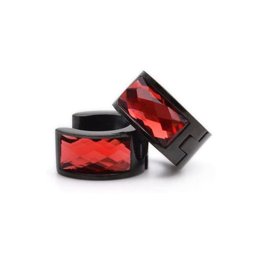 Red Crystal Black Stainless Steel Studs Hoop Men's Earrings