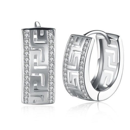 Greek Key with Clear Cubic Zirconia Copper Casual Hoop Earrings