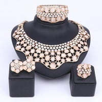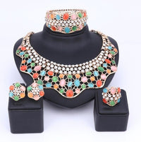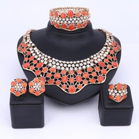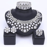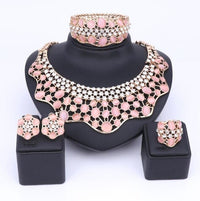 Wear this exquisite Jewelry Set by Innovato Design on your wedding day. The precious stones in these pieces of jewelry will make you look elegant and sophisticated. Made of 316L stainless steel, this amazing jewelry set comprises of a sleek, polished, and smooth surface as seen over its shank, ornament, earring backs, charms, link chain, and pendant. The necklace has crystal bezel-set white round brilliant cut stones and cat's eye bezel-set, "pick your color," oval cut stones. Also, the bracelet has a design that is similar to the necklace pendant. Moreover, the earring charms have the same design as the necklace pendant so as the ornament of the ring.