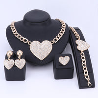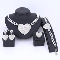 Crystal and Rhinestone Heart Necklace, Bracelet, Earrings & Ring Wedding Statement Jewelry Set