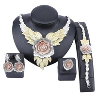 Express your love for your forever partner by showing him this Jewelry Set by Innovato Design. You will be presenting the best version of you and the flowers in these pieces of jewelry will complete your gorgeous look. Made of 316L stainless steel, this awesome jewelry set comprises of a sleek, polished, and smooth surface as seen over its shank, ornament, earring backs, charms, link chain, and pendant. The necklace has a big rose in the middle of the pendant, some leaves on its sides, and both of them are ingrained with crystal gypsy-set white round brilliant cut stones. Also, the bracelet has a design that is similar to the necklace pendant. Moreover, the earring charms have the same design as the necklace pendant so as the ornament of the ring.