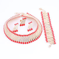 Crystal Steel Strips Necklace, Bracelet, Earrings & Ring Wedding Jewelry Set