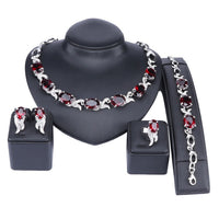 Gold-Plated and Silver-Plated Red Crystal Necklace, Bracelet, Earrings & Ring Wedding Jewelry Set