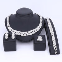 Gold/Silver Color Crystal Heart Necklace, Bracelet, Earrings & Ring Wedding Jewelry Set