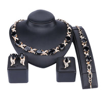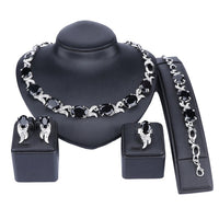Gold/Silver-Plated Black Crystal Necklace, Bracelet, Earrings & Ring Wedding Jewelry Set
