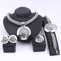 Gold/Silver-Plated Flower Design Cup Necklace, Bracelet, Earrings & Ring Wedding Statement Jewelry Set