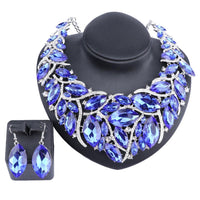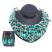 Large Crystal Necklace & Earrings Wedding Jewelry Set