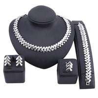 Tiny Leaves Necklace, Bracelet, Earrings & Ring Wedding Statement Jewelry Set