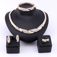 Twisted Gold/Silver-Plated Crystal Necklace, Bracelet, Earrings & Ring Wedding Jewelry Set