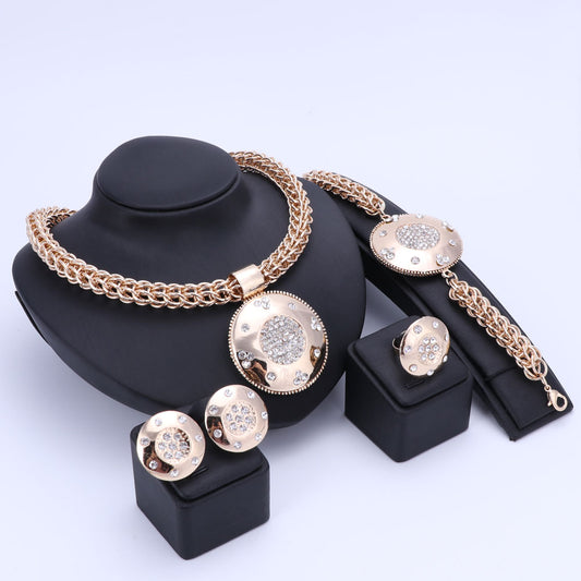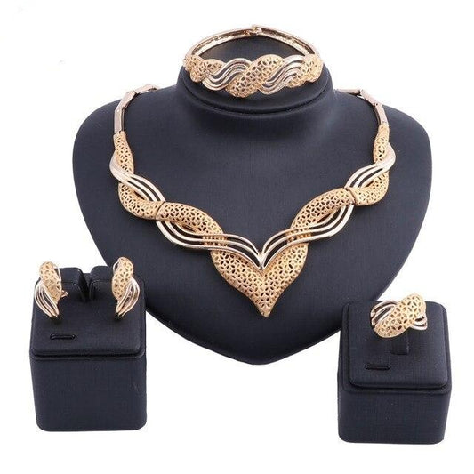 Gold-Plated Crystal Necklace, Bracelet, Earrings & Ring Wedding Jewelry Set