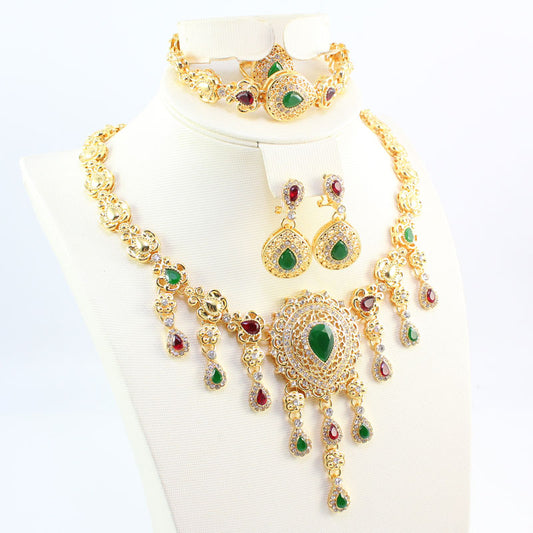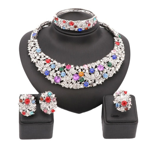 Colorful Rhinestone Necklace, Bracelet, Earrings & Ring Wedding Jewelry Set