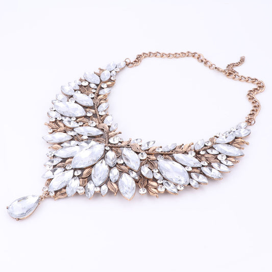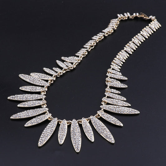 Vintage Gold-Plated Clear Rhinestone and Crystal Necklace & Earrings Wedding Statement Jewelry Set