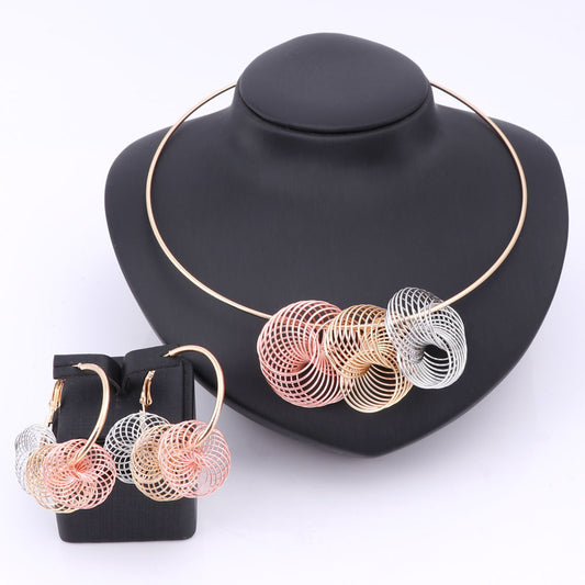 Big Spiral Design Necklace & Earrings Wedding Statement Jewelry Set
