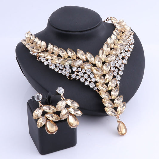 Champagne Crystal Necklace & Earrings Wedding Jewelry Set