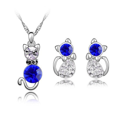 Austrian Crystal Cat Necklace & Earrings Fashion Jewelry Set