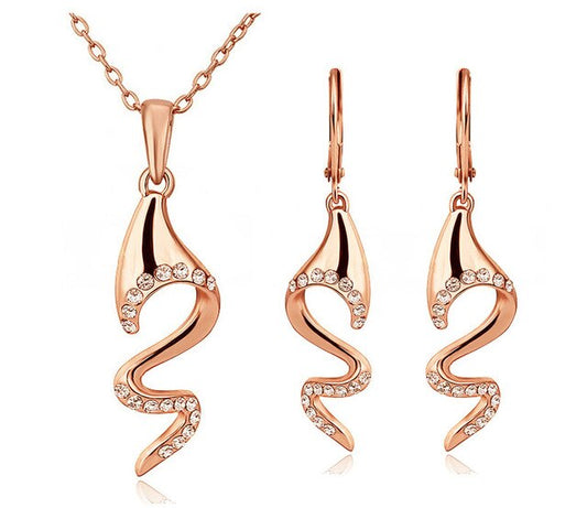 Rose Gold Crystal Necklace & Earrings Fashion Wedding Jewelry Set