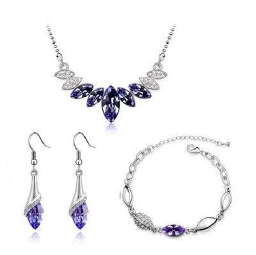 Austrian Crystal Bud and Leaf Necklace, Bracelet & Earrings Fashion Jewelry Set