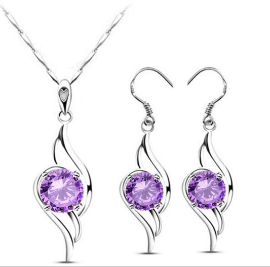 Angel Wing Cubic Zirconia Necklace & Earrings Fashion Jewelry Set