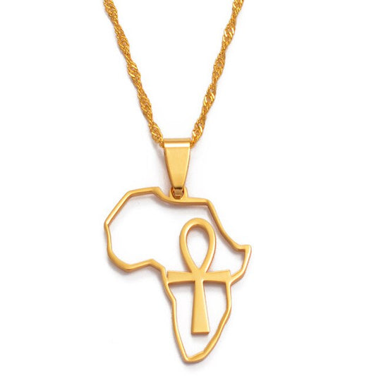 Gold/Silver-Plated Africa Map & Ankh Pendant Necklace