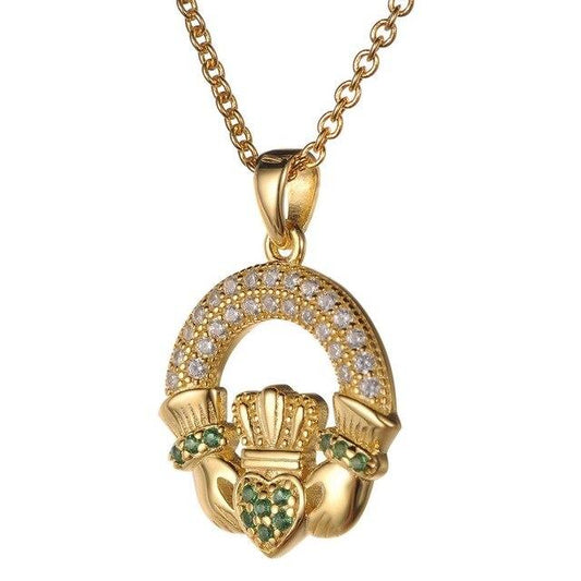 925 Sterling Silver Emerald Claddagh Pendant Necklace